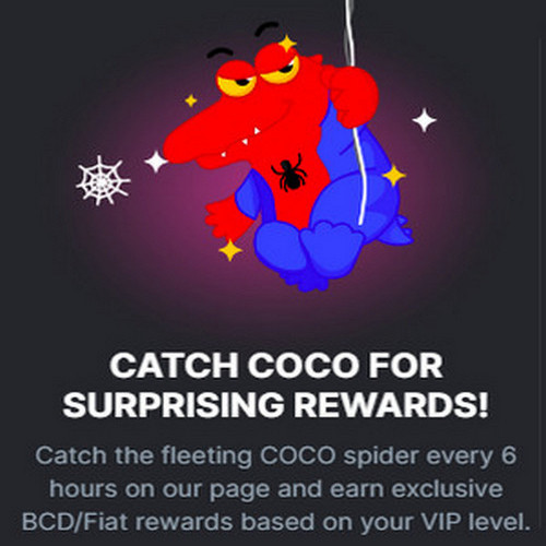 This feature involves COCO, the platform’s spider mascot, appearing randomly every six hours. Players at VIP14 and above need to be quick to click on COCO when it appears to receive BCD (BC Dollars) rewards. The amount awarded increases with the player’s VIP level, rewarding higher-tier members with greater benefits.