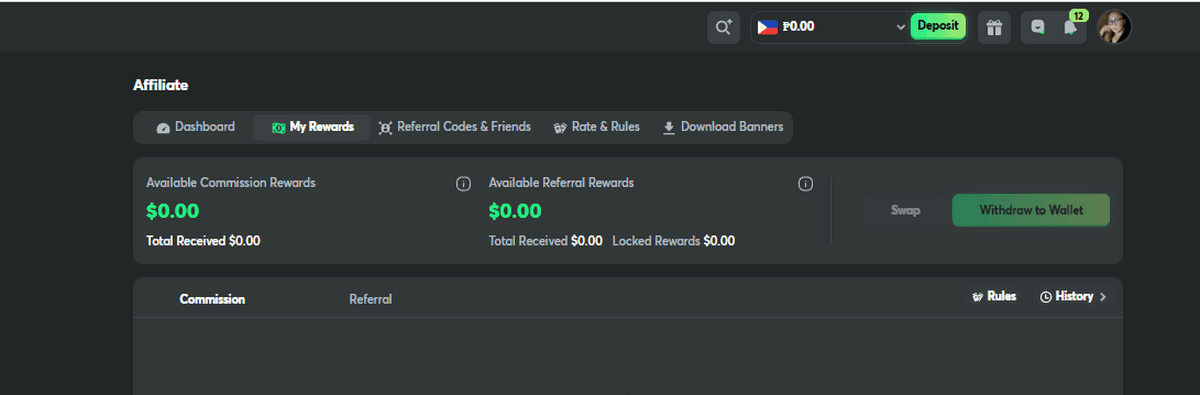 - Withdrawal History. View your referral withdrawals to manage earnings effectively.