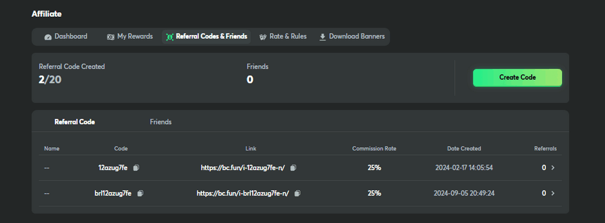 - Active Referrals. Reflects how many of your referrals are actively using the platform, letting you see which invited friends find BC.Game engaging.